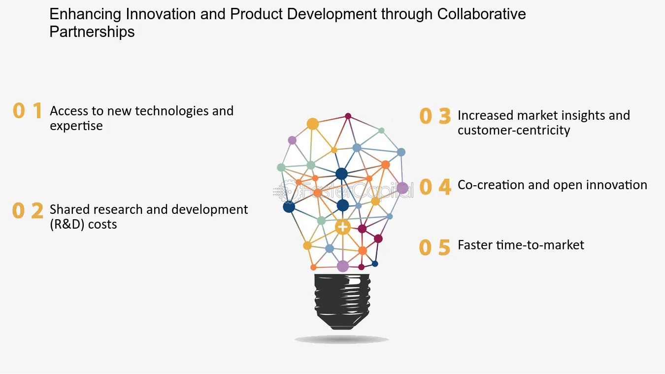 Strategic partnerships help with funding. They also improve technology. Infrastructure, knowledge, and brand reputation get better, too. A company with a strong R&D team can work with another company. This second company should be good at marketing and distribution. When combined, they can operate more quickly and extensively than either could on its own.